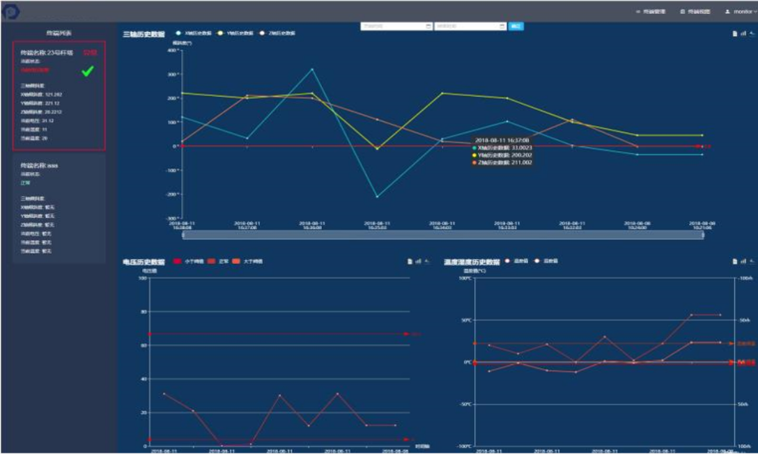 (1)系統(tǒng)展示。主要提供鐵塔的狀態(tài)數(shù)據(jù):傾斜度、溫度、電壓等采集信息等的分析和瀏覽;