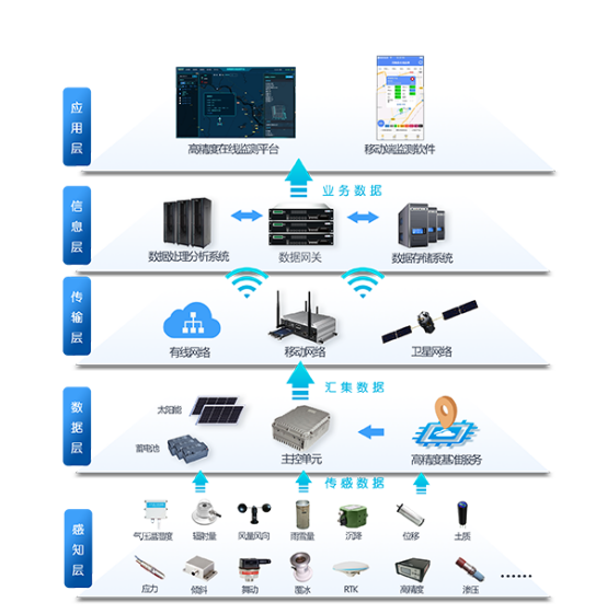 該方案利用北斗 形變監(jiān)測設(shè)備的北斗高精度差分定位、多傳感器融合技術(shù),專有云服務(wù)、移動通信、衛(wèi)星通信技術(shù)、大數(shù)據(jù)及人工智能等技術(shù)相結(jié)合,實(shí)時、在線、可視化反饋監(jiān)測樓房、橋梁、桿塔以及邊坡等監(jiān)測體的變化情況,為形變預(yù)警分析提供決策依據(jù)和參考,以達(dá)到在最短的時間預(yù)警、報警的功能。